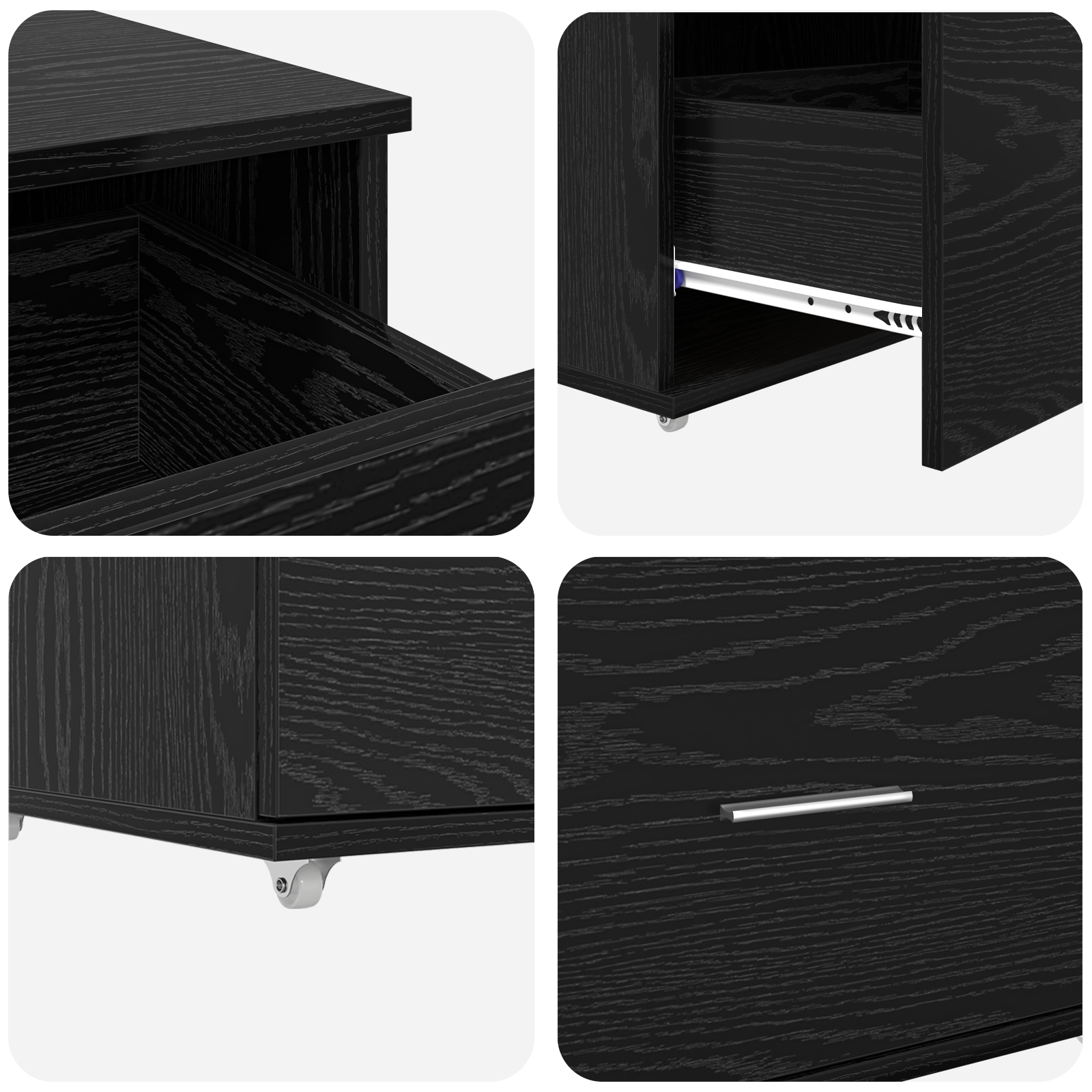 Dulap cu sertare cu roata Negru 55 x 45 x 33.5 cm Lemn compozit