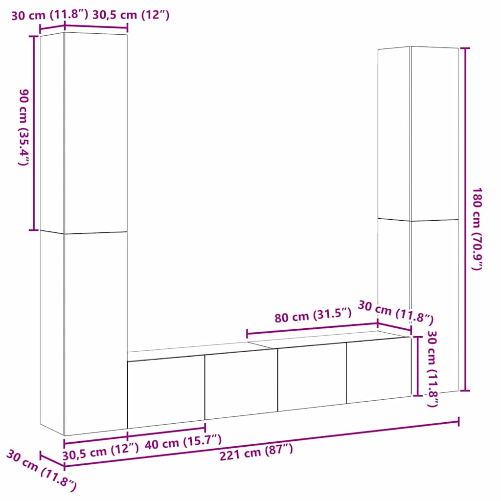 Cabinet TV 6 pcs Maro 221 x 30 x 180 cm Lemn compozit
