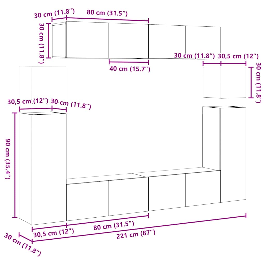 Cabinet TV 8 pcs Maro 30.5 x 30 x 90 cm Lemn compozit