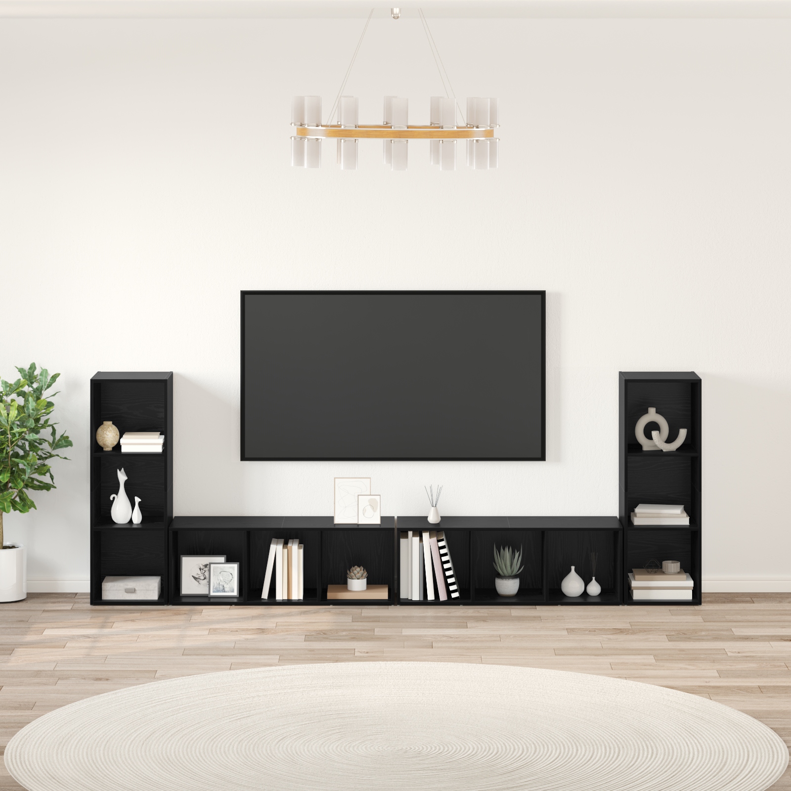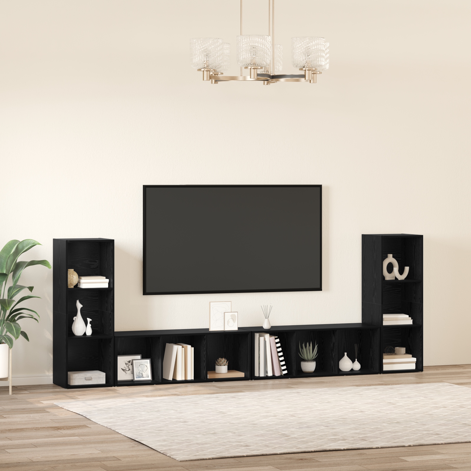 Cabinet TV 4 pcs Stejar negru 37 x 35 x 107.5 cm