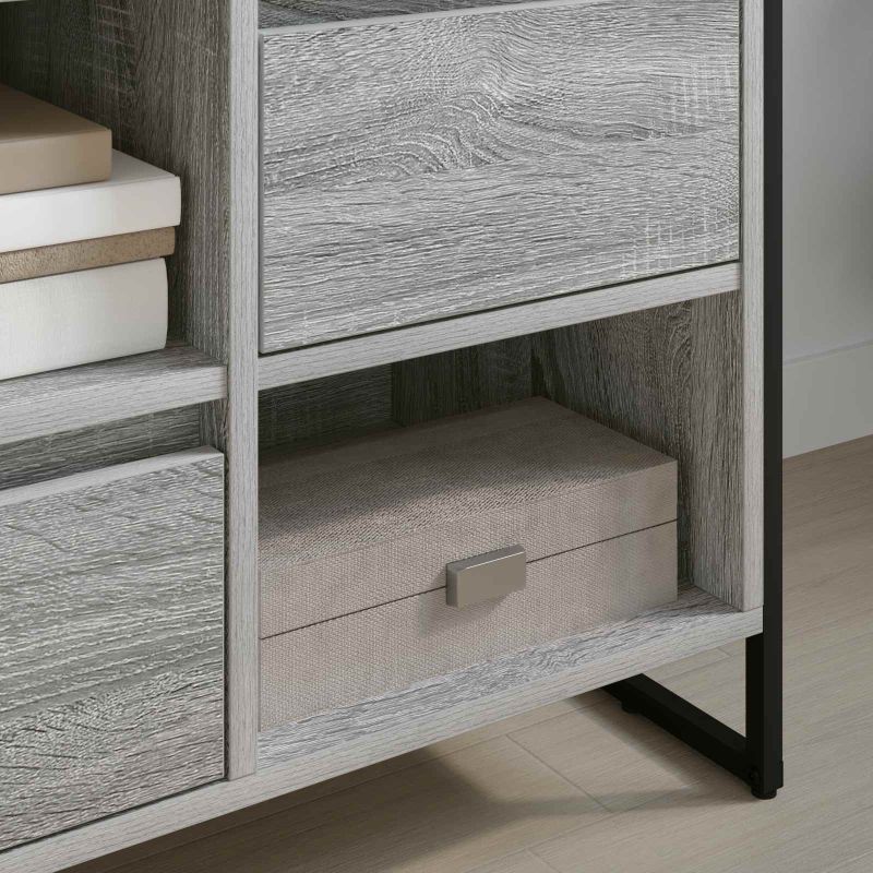 Sufrageria TV Industrial aduce un pic de eleganță modernă cu un accent rustic în sufrageria ta. Designul ei chic și rectangular oferă locul perfect pentru sistemul tău de divertisment, iar lemnul folosit îi dă un farmec atemporal care se integrează bine în orice stil. E făcută pentru cei care apreciază un spațiu de trai organizat și confortabil, fiind ideală pentru televizor, electronice și alte accesorii multimedia.