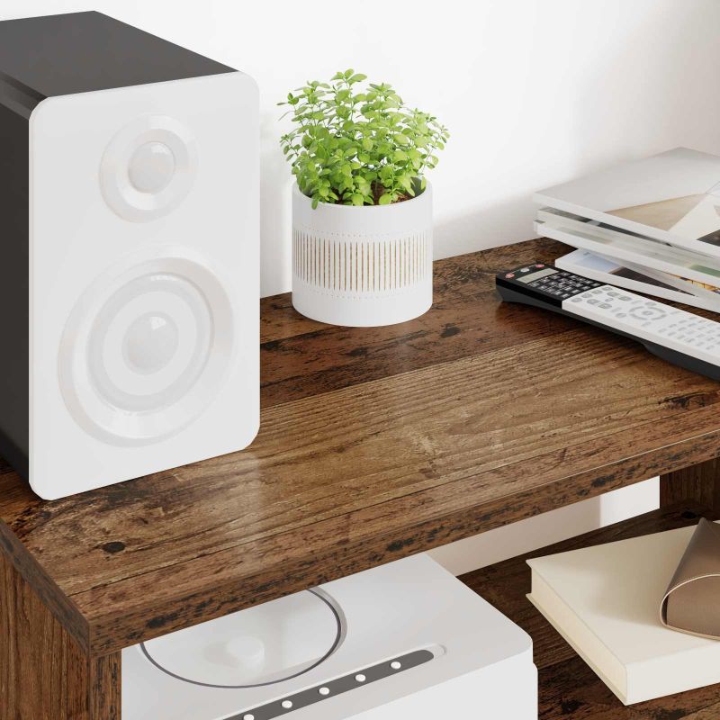 • Componente Incluse: Are rafturi din lemn care ajută să pui la punct toate gadgeturile media și decorurile. Fiecare raft e rezistent și poate suporta greutăți, așa că e perfect pentru console de divertisment și sisteme audio. E ideal pentru casele care iubesc tehnologia.