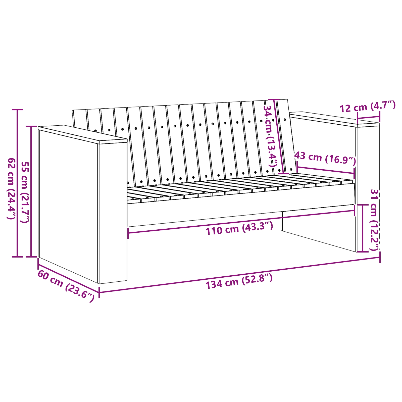 Canapea de grădină Alb 134 x 60 x 62 cm Lemn masiv de pin