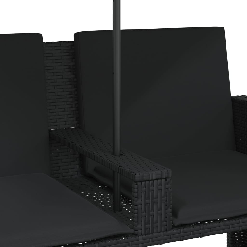 Canapea de grădină cu 2 locuri/umbrelă/taburete negru poliratan