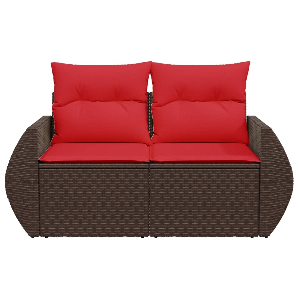 Canapea de grădină cu 2 locuri, maro, din poliratan, cu perne