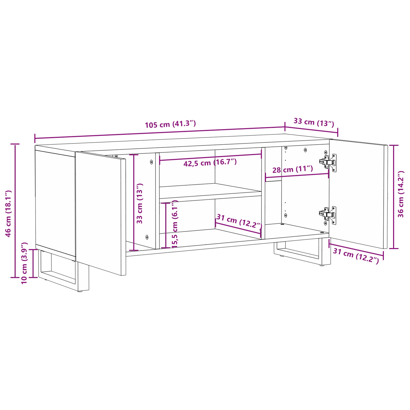 Cabinet TV Alb 105 x 33 x 46 cm Lemn masiv de mango