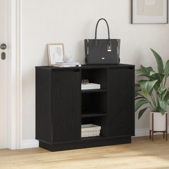Bufet cu raft cu ușă Stejar Negru 90 x 32 x 75 cm Lemn compozit