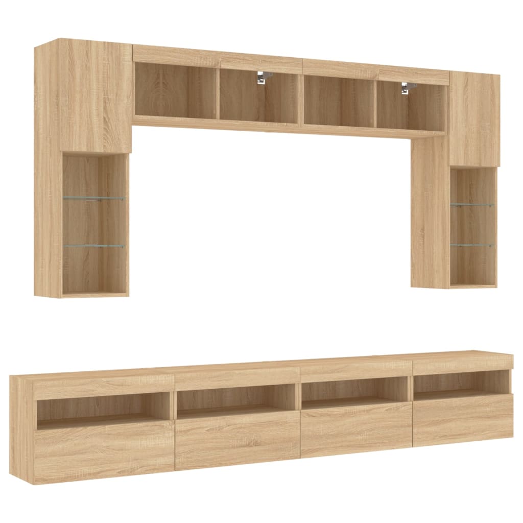 Comode TV de perete cu lumini LED, 8 piese, stejar sonoma