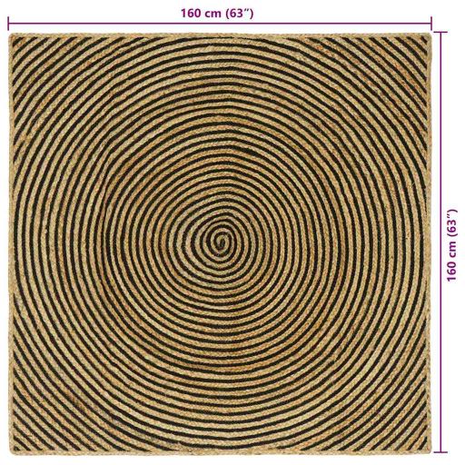 Covor Natural și Negru 160 x 160 cm Iută