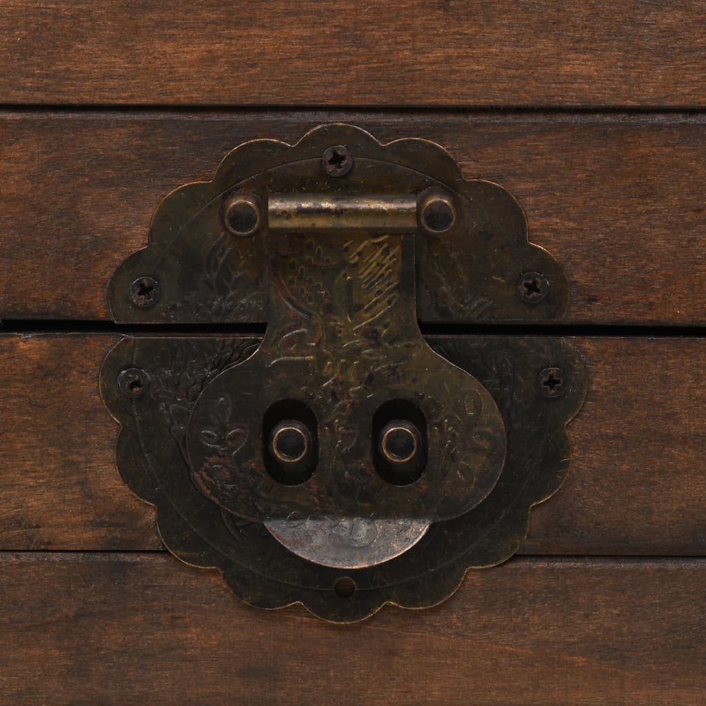 Acest cufăr de depozitare este realizat din lemn masiv, cu o culoare în stil antic, și este decorat cu curele din piele artificială și elemente metalice, ce îi oferă un farmec vintage. Cufărul din lemn oferă un spațiu amplu de depozitare pentru haine, cărți, reviste și pentru orice alte obiecte pe care doriți să le păstrați la îndemână, dar ferite de priviri. Datorită încuietorii și mânerelor cu aspect vintage, acest cufăr poate fi închis și poate fi transportat cu ușurință. Cufărul este deja asamblat. Nu este necesară asamblarea.