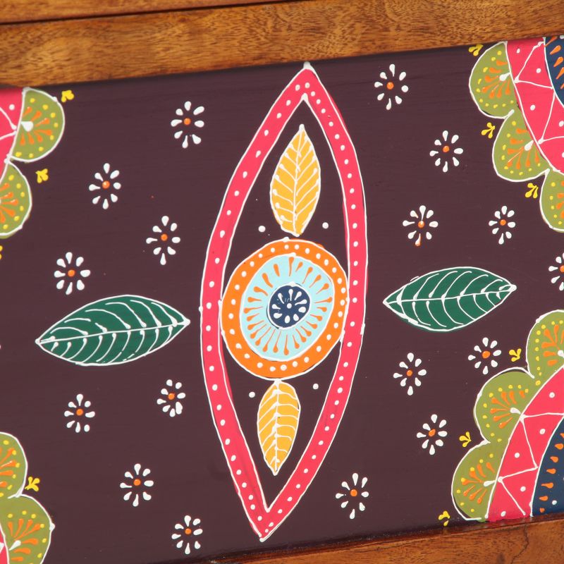 - Design Unic: Bufetul ăsta e fabricat din lemn de Sheesham, cu inserții care nu doar arată bine, dar și aduc personalitate locului tău. Culoarea caldă a lemnului și modelele colorate aduc viață în orice colț, asigurându-se că va atrage privirile oaspeților tăi. E clar că texturile astea fac din el un punct de atracție în orice cameră.