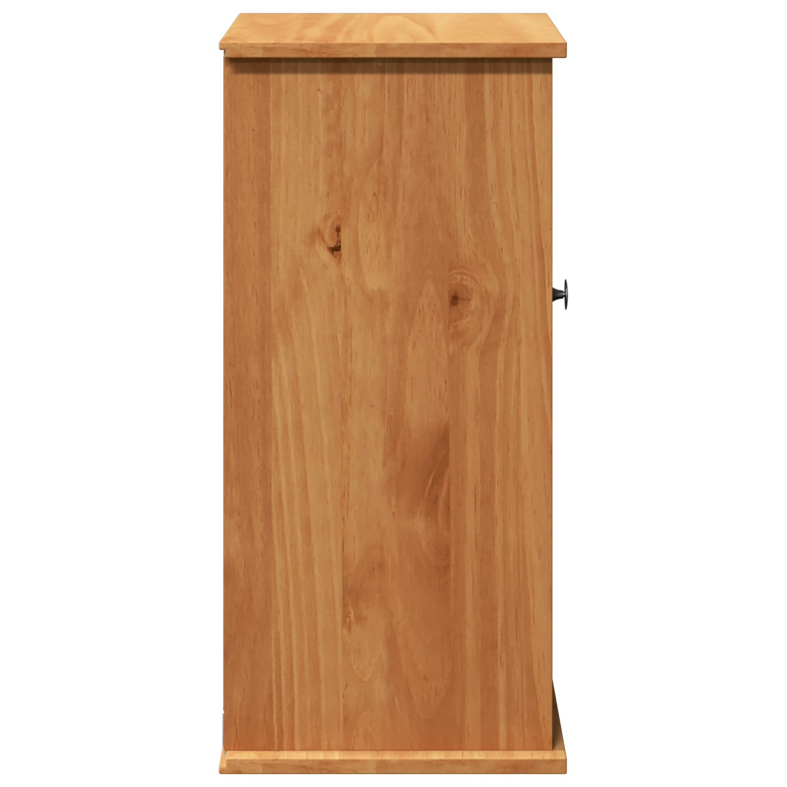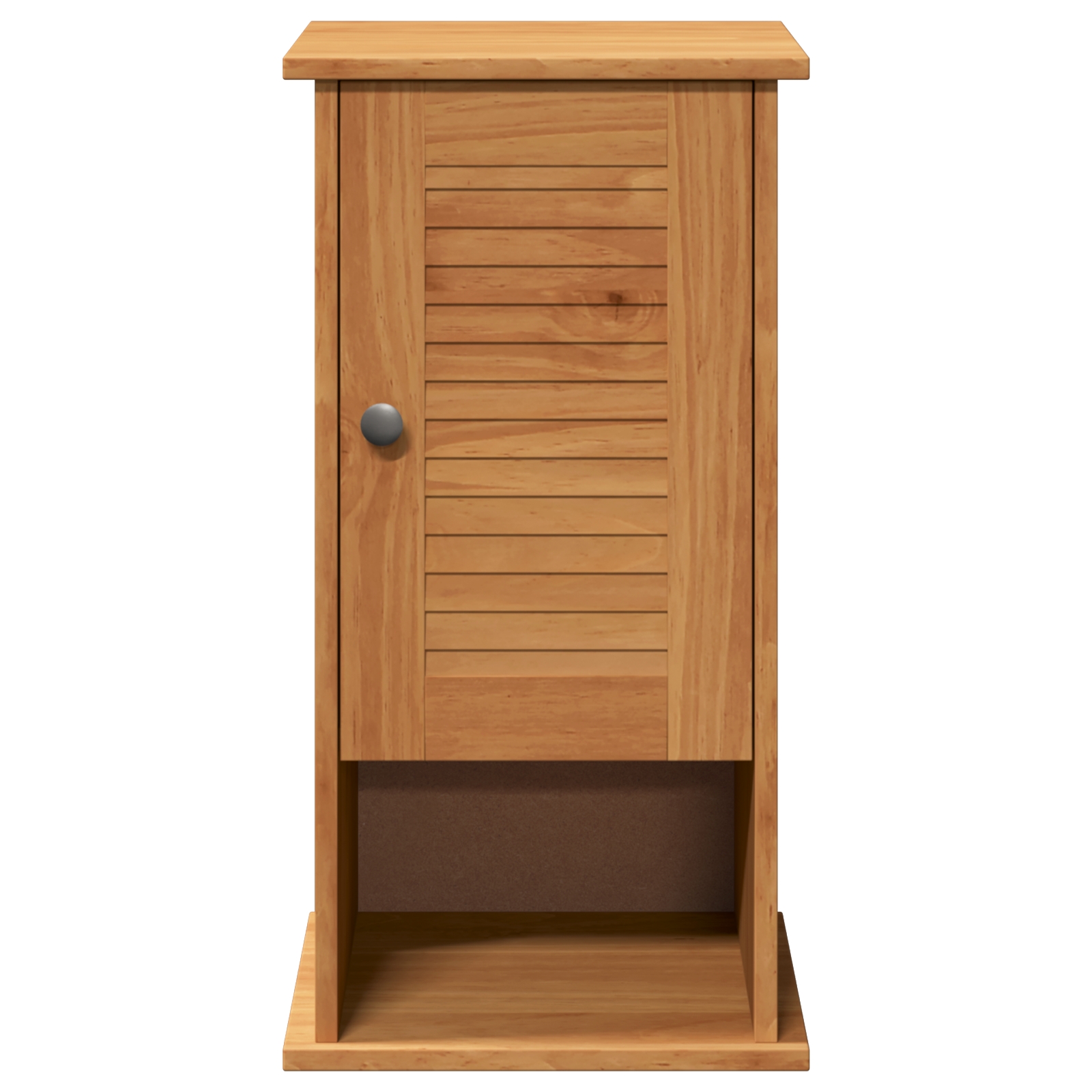 • Materiale: Dulapul ăsta e din lemn masiv de pin, care combină puterea cu un stil simplu. Materialul îi dă o senzație stabilă și adaugă un pic de farmec rustic. Lemnul de pin e rezistent, așa că face față utilizării zilnice și păstrează atmosfera caldă și naturală în baie.