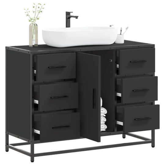Dulap chiuveta de baie, negru, 80x33x60 cm, lemn compozit