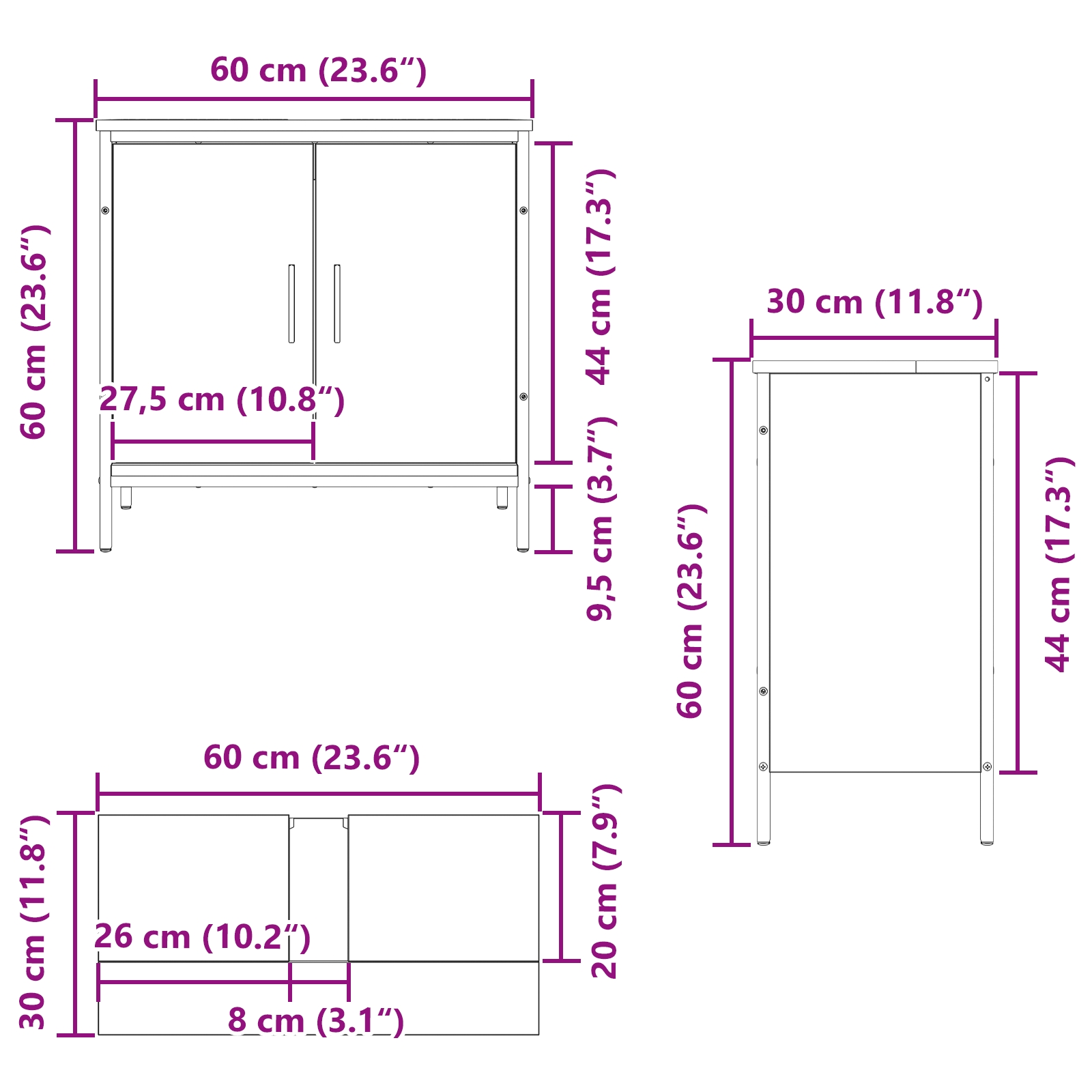 Dulap pentru chiuvetă de baie Stejar negru 60 x 30 x 60 cm
