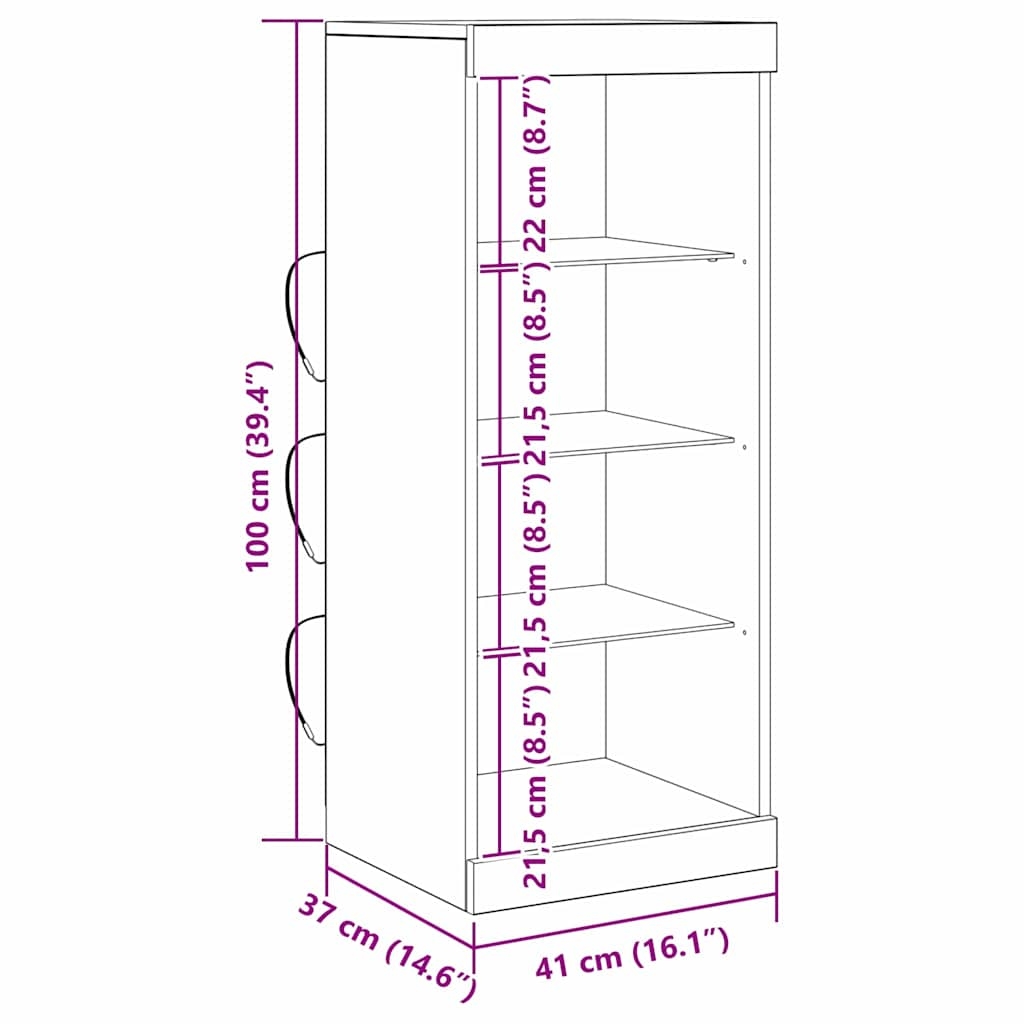 • Componente Incluse: Fiecare bufet vine cu benzi LED integrate care pun în evidență rafturile din sticlă. LED-urile colorate creează o atmosferă caldă și sunt ușor de controlat. Iluminatul integrat îți face expunerile vizibile, adăugând atât stil, cât și funcționalitate oricărei camere.