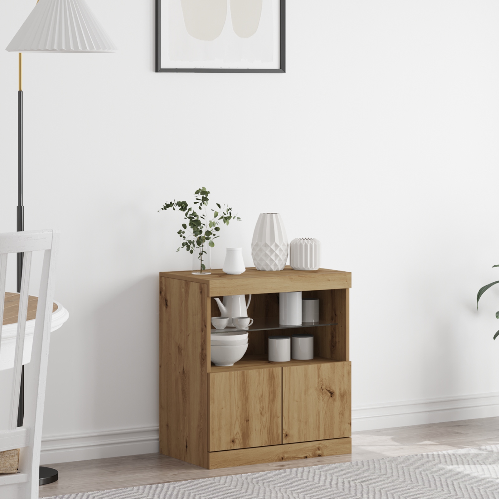 - Luminile LED Integrate Iluminează-ți lucrurile cu LED-urile integrate, sporind funcționalitatea bufetului. Lumina nu doar că le adaugă stil, dar te ajută să găsești repede ce vrei, făcând din bufet o alegere cool și practică.