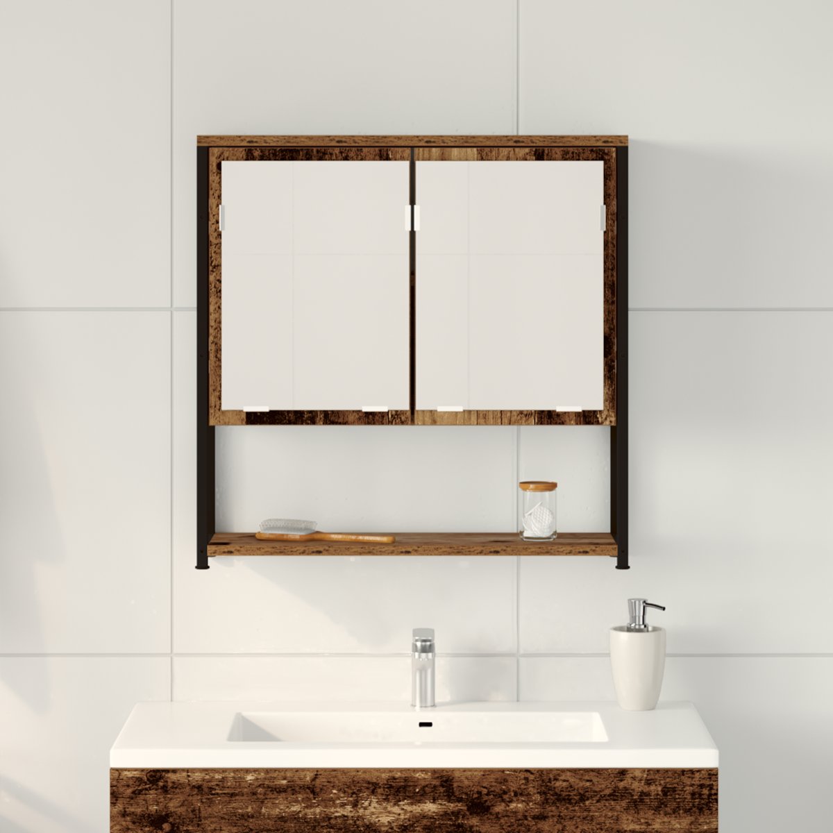Dulap cu oglindă pentru baie cu raft Lemn vechi 60 x 16 x 60 cm