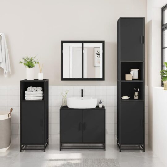 Dulap cu oglindă pentru baie neagră 65x20x60 cm lemn prelucrat