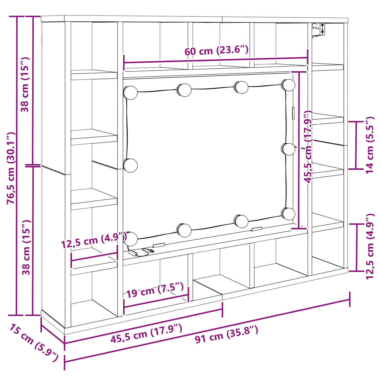 - Dimensiuni generale: 91 x 15 x 76.5 cm (L x l x î)