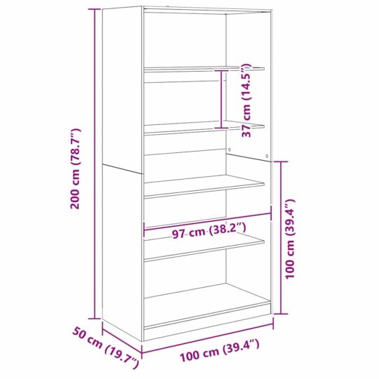 Dulap cu raft Stejar Negru 100 x 50 x 200 cm Lemn compozit