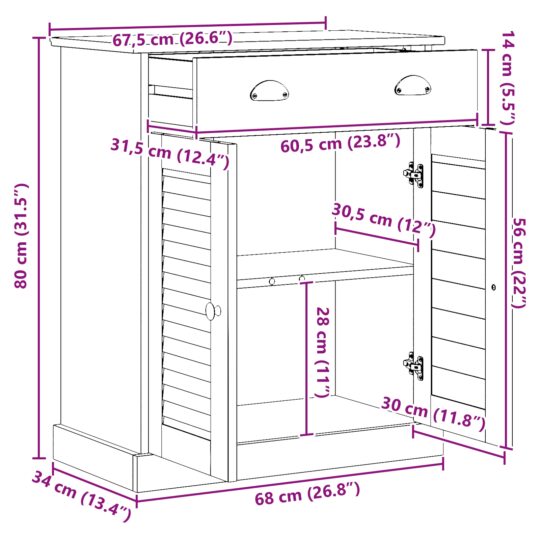 Dulap de Baie VIGO Alb 67.5 x 34 x 80 cm Lemn masiv de pin