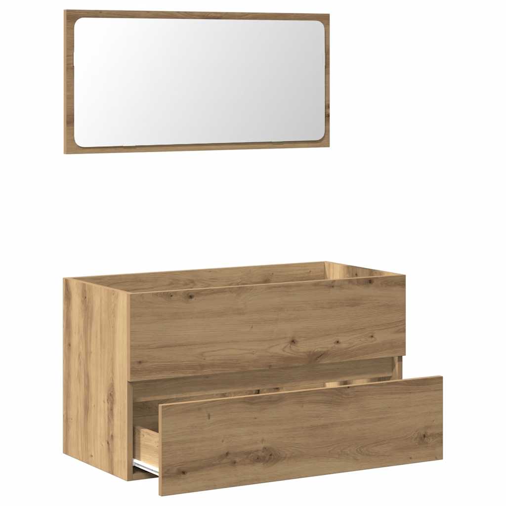 Dulap de baie cu oglindă Artisan Stejar lemn prelucrat