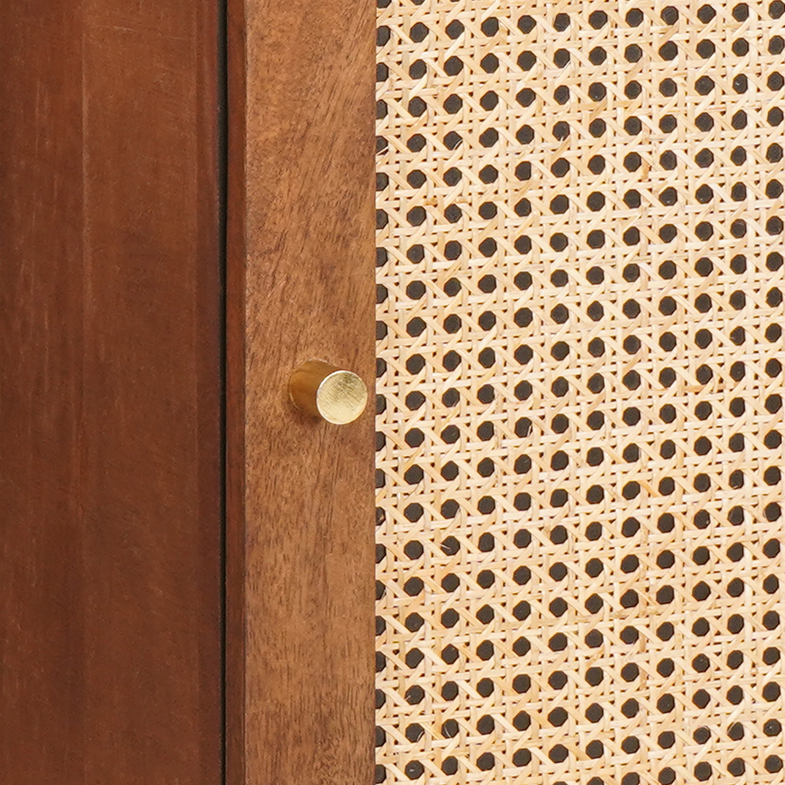 • Materiale Premium: Construit din lemn masiv de mango și lemn prelucrat, acest cabinet combină durabilitatea cu un aspect vizual atrăgător. Aceste materiale sunt selectate pentru robustețea lor, asigurându-se că cabinetul va servi fiabil de-a lungul anilor, în timp ce finisajul texturat îmbunătățește aspectul său strălucitor.