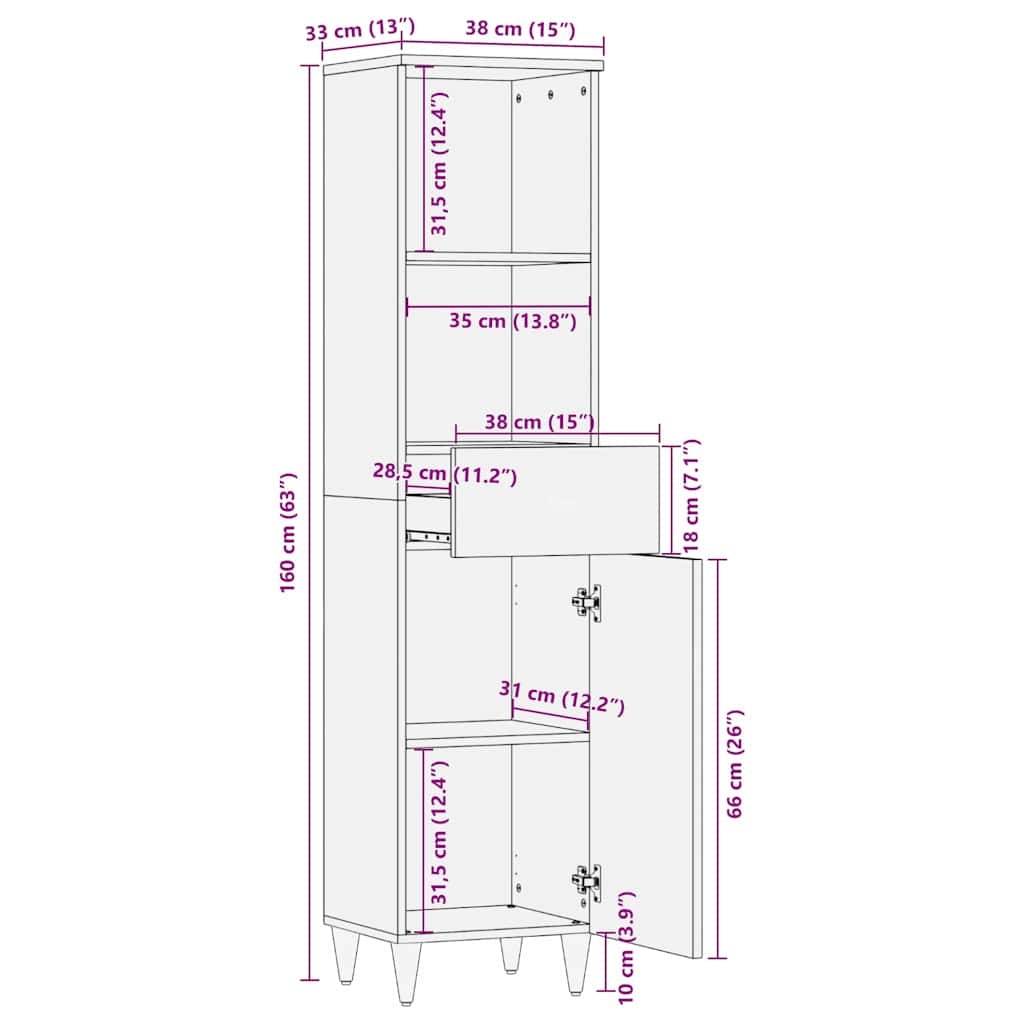 Dulap de Baie cu ușă Alb 38 x 33.5 x 160 cm Lemn solid de mango