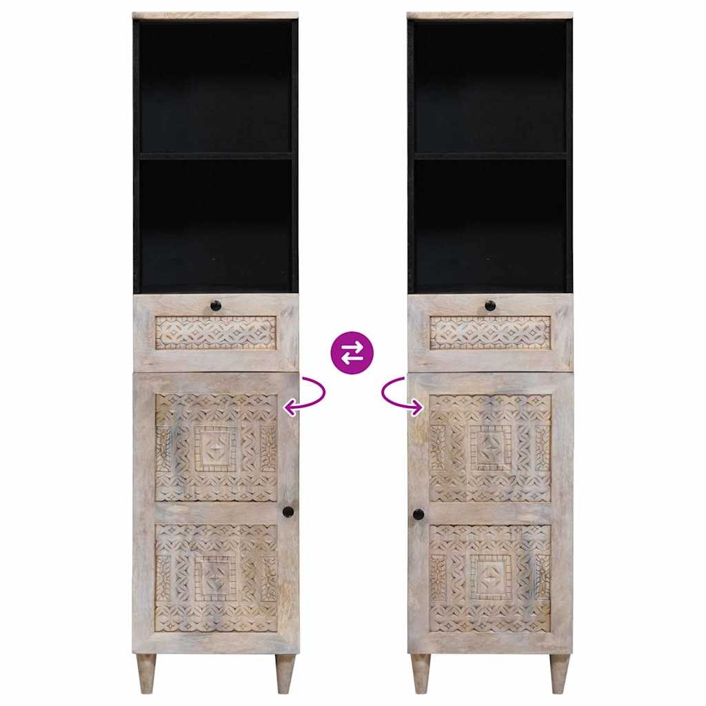 • Lemn de mango solid: Cabinetul e din lemn de mango solid, cunoscut pentru textura sa frumoasă și căldura pe care o oferă. Arată grozav și e construit să dureze, iar fiecare piesă e specială.