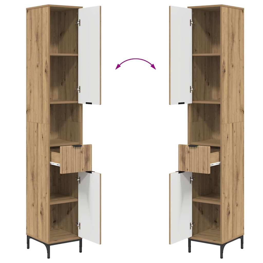 Dulap de baie înalt cu ușă stejar artizanal 31.5 x 33 x 190 cm