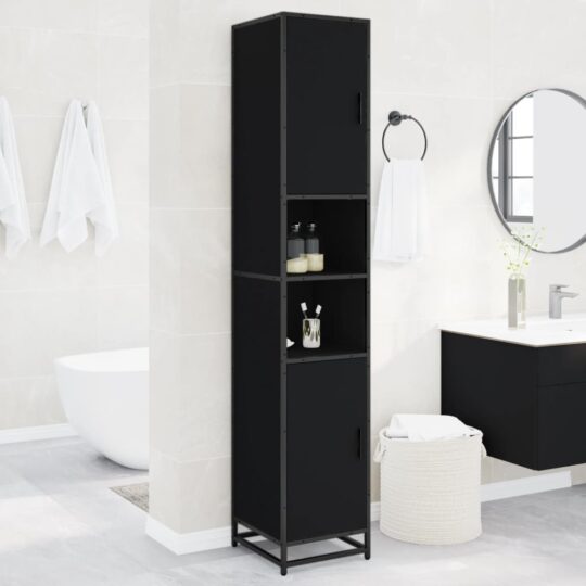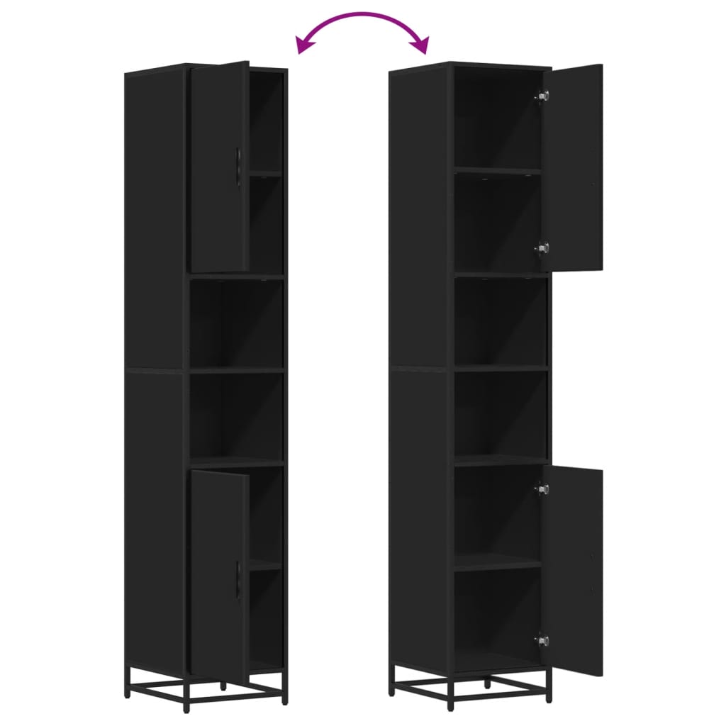Dulap de baie, negru, 35×37,5×188,5 cm, lemn prelucrat/metal