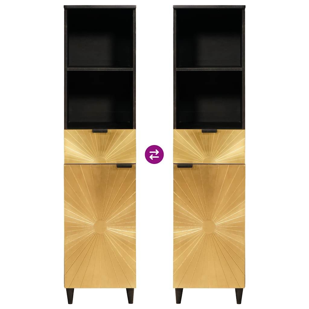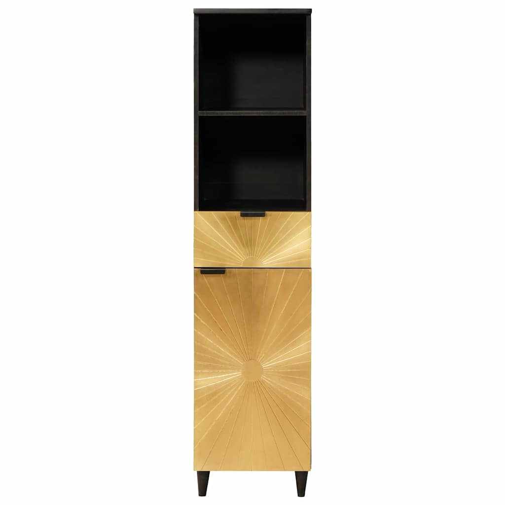 Dulap de Baie Negru și Aur 38 x 33 x 160 cm Lemn masiv de mango