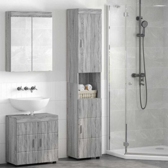 Dulap de Baie TULUM sonoma gri 37 x 31.5 x 203 cm Lemn compozit