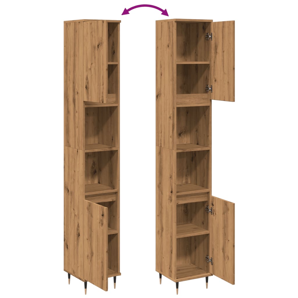Dulap de baie, stejar artizanal, 30x30x190 cm, lemn prelucrat