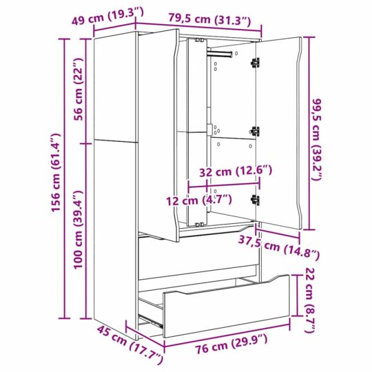 - Dimensiuni generale: 79,5 x 49 x 156 cm (L x l x î)