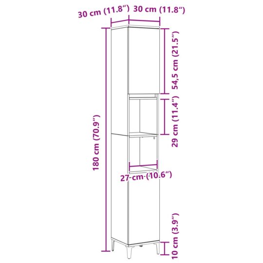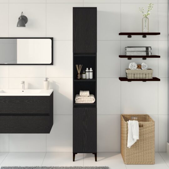 Dulap de Baie Stejar negru 30 x 30 x 190 cm Lemn compozit