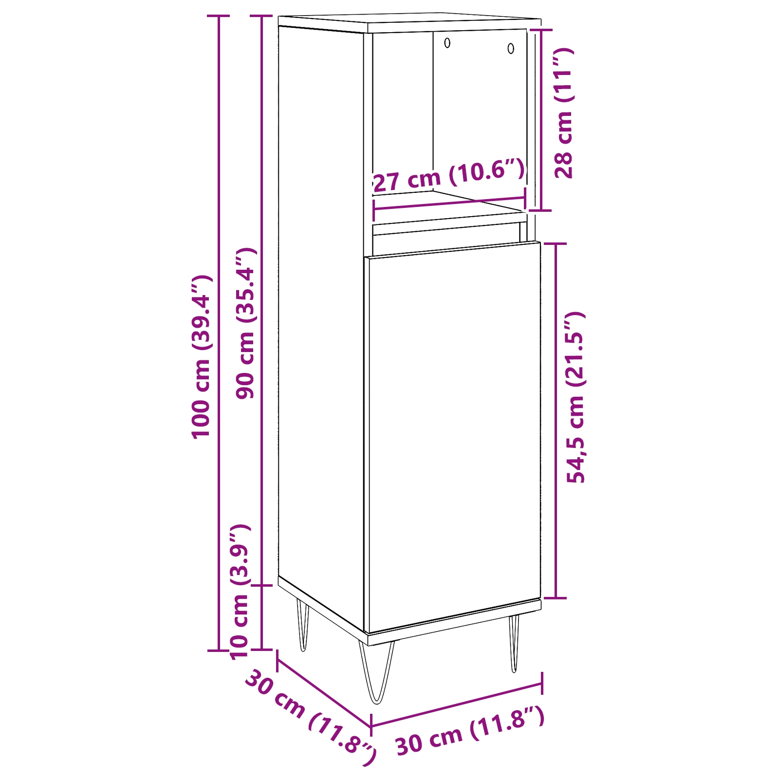 - Dimensiuni generale: 30 x 30 x 100 cm (L x l x î)