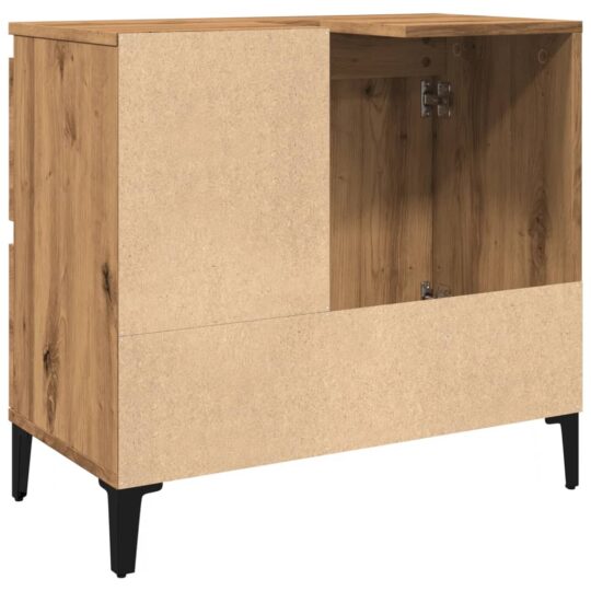 - Picioare metalice: Picioarele metalice ale dulapului chiuvetei de baie asigură robustețe și stabilitate.