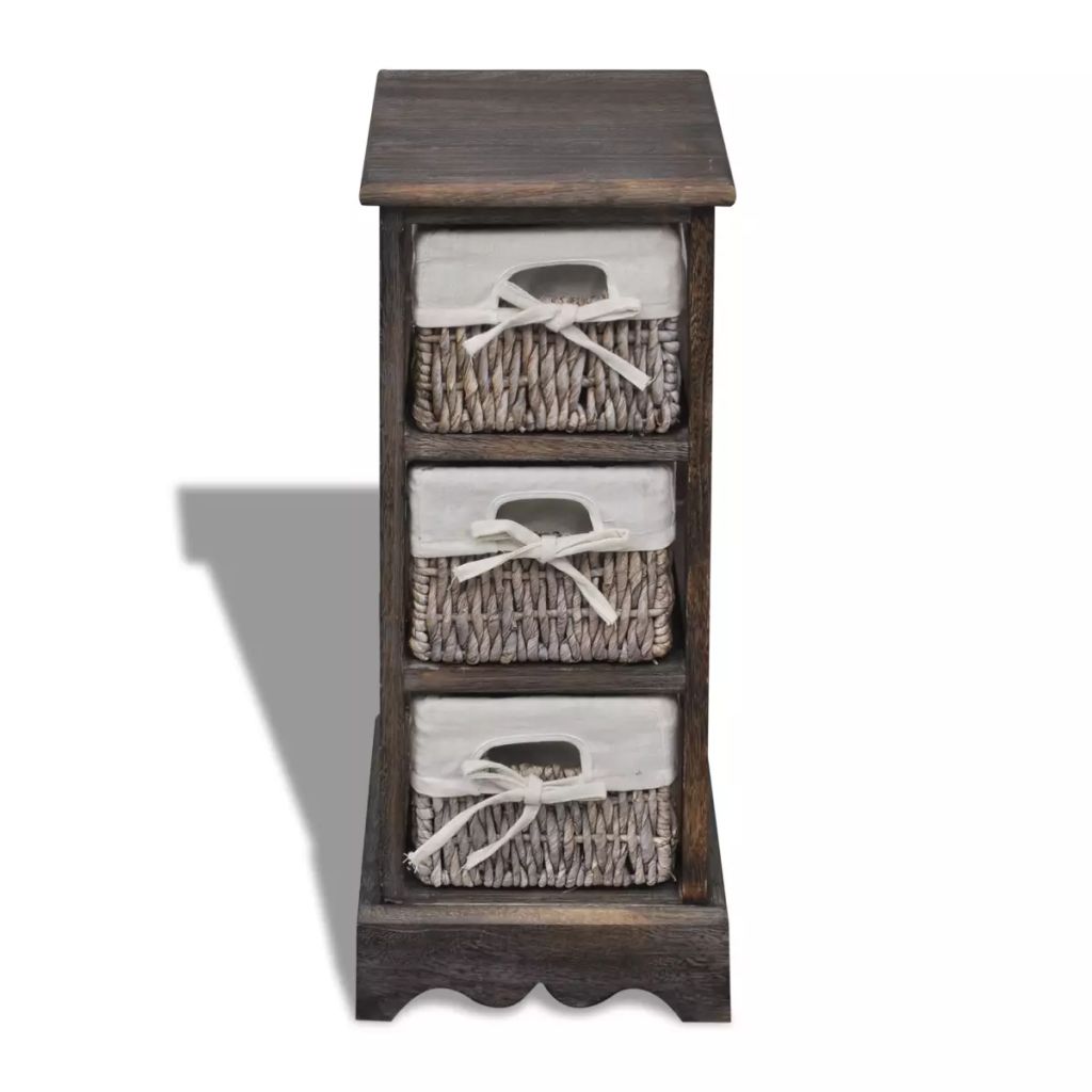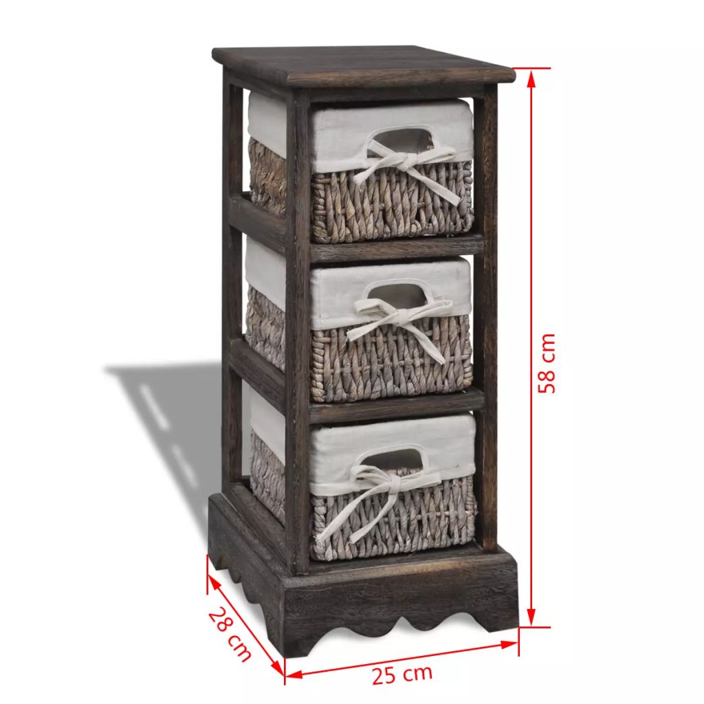 Dulap de depozitare din lemn, 3 coșuri împletite, maro