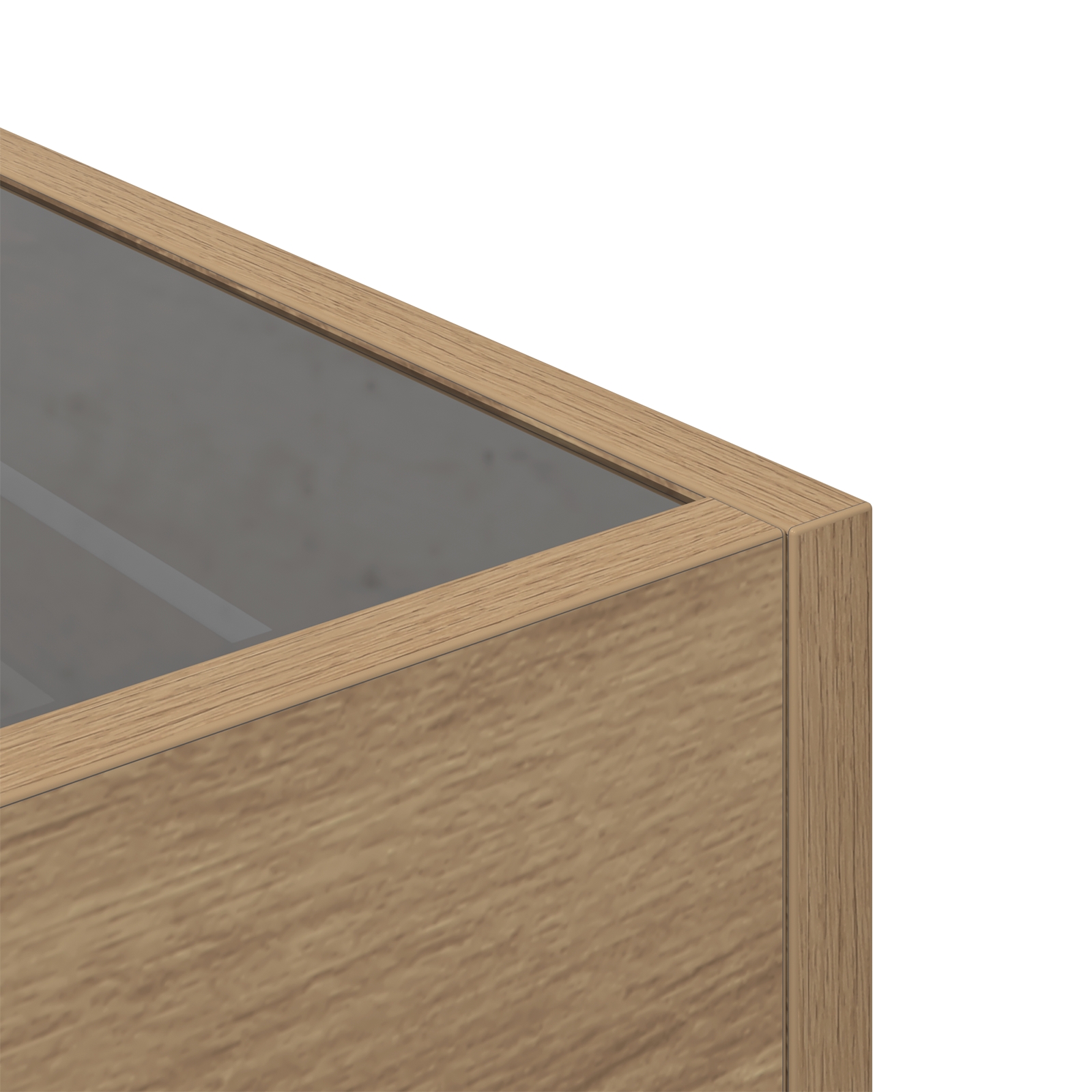 - Materiale: E făcută din lemn prelucrat rezistent și un blat din sticlă, arată stylish și e construită să dureze. Lemnul dă un charm robust, iar sticla adaugă o senzație lejeră care se potrivește cu orice tip de interior.