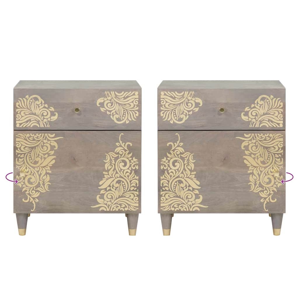 Dulap de noapte Gri 50 x 33 x 60 cm Lemn masiv de mango