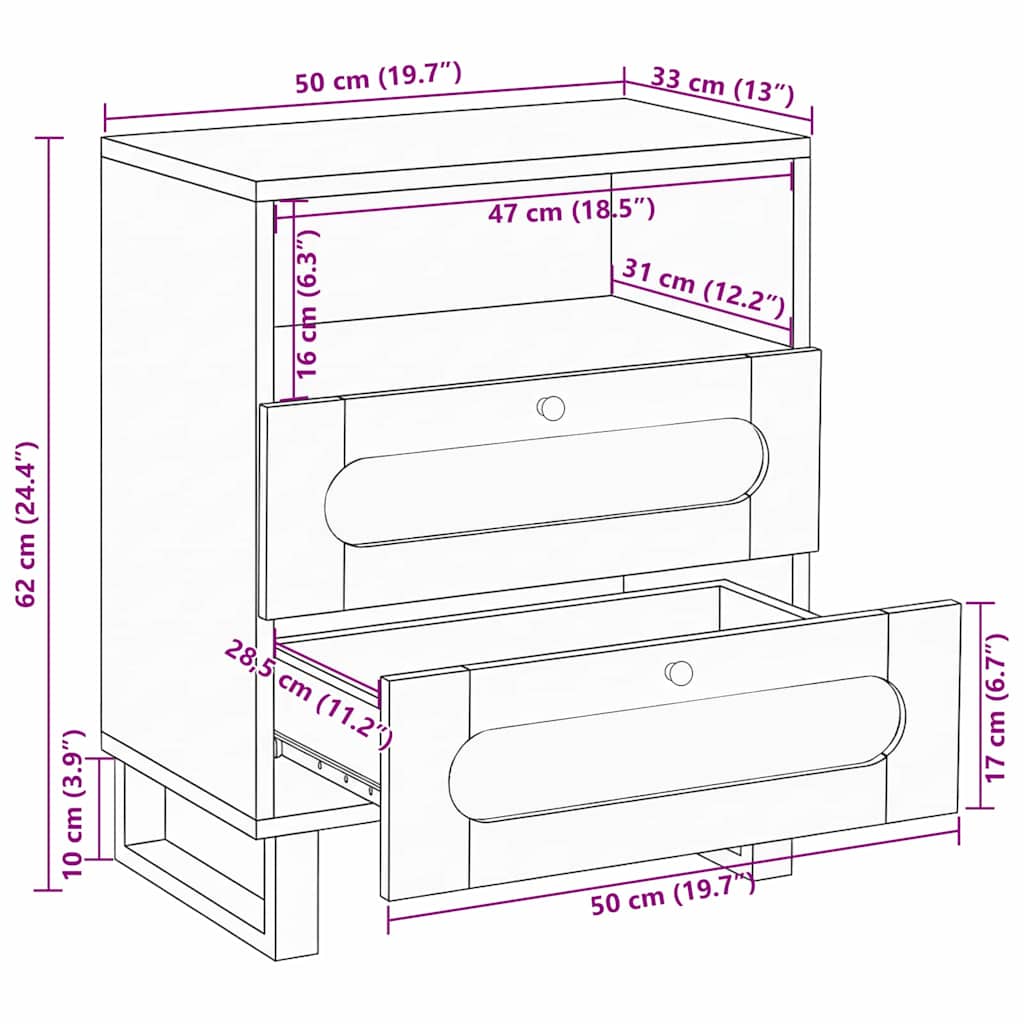 Dulap de noapte natural 50 x 33 x 60 cm Lemn de mango solid