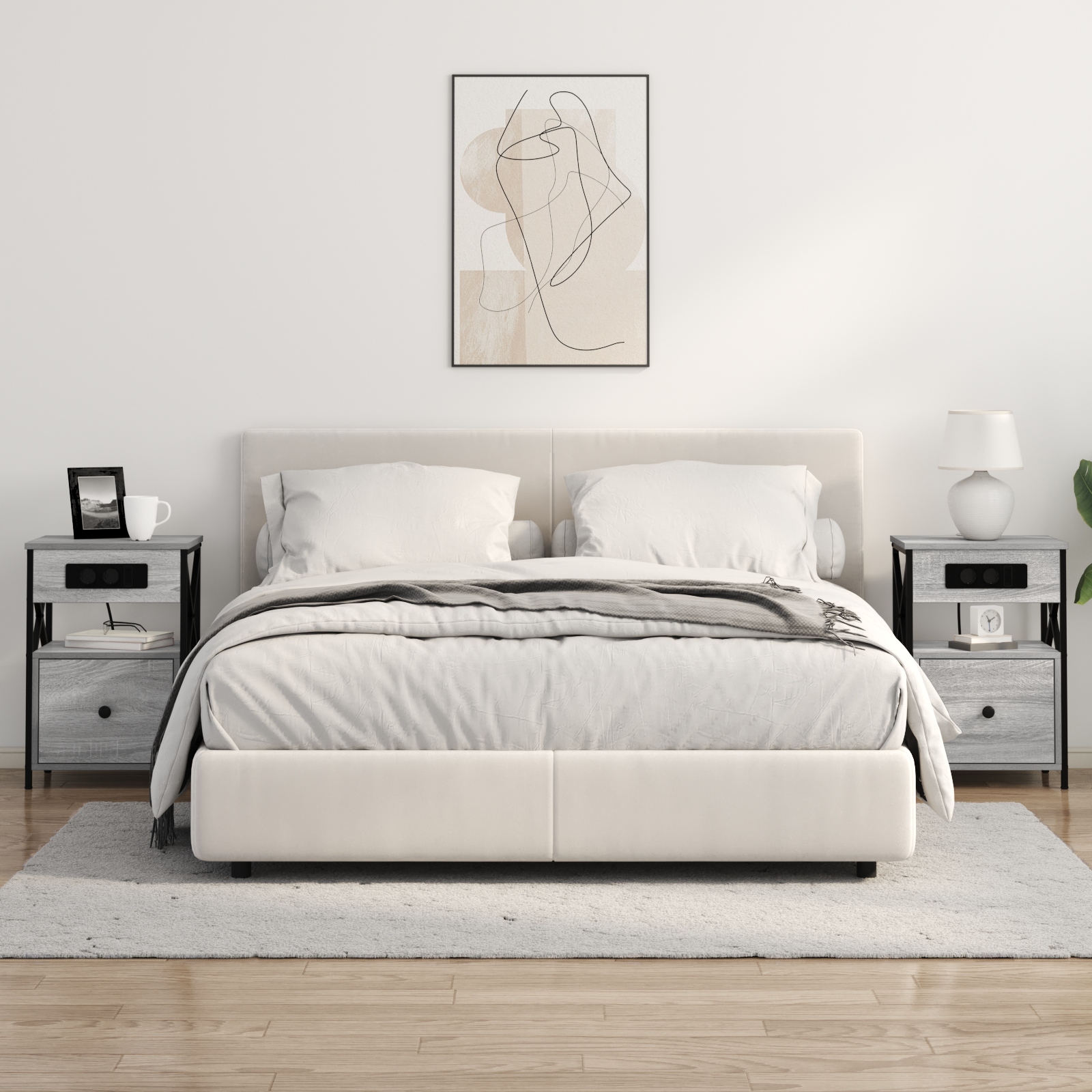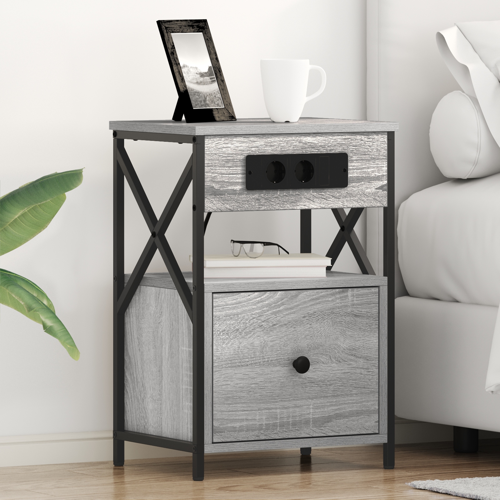 • Materiale de calitate: Construită din lemn prelucrat pentru utilizare de lungă durată, această noptieră combină rezistența cu estetică elegantă. Finisajul texturat al suprafeței, combinat cu un cadru din oțel, oferă o fundație structurală robustă care rezistă uzurii zilnice menținându-și în același timp atractivitatea stilistică.