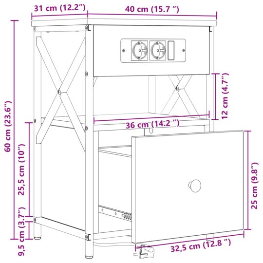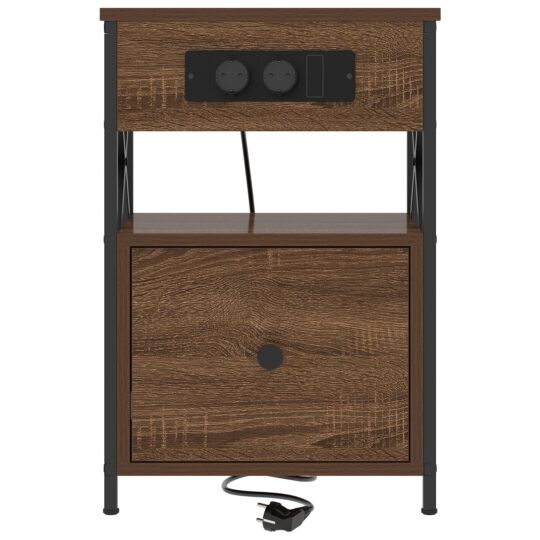 - Materiale de calitate: Construită din lemn prelucrat pentru utilizare de lungă durată, această noptieră combină rezistența cu estetică elegantă. Finisajul texturat al suprafeței, combinat cu un cadru din oțel, oferă o fundație structurală robustă care rezistă uzurii zilnice menținându-și în același timp atractivitatea stilistică.