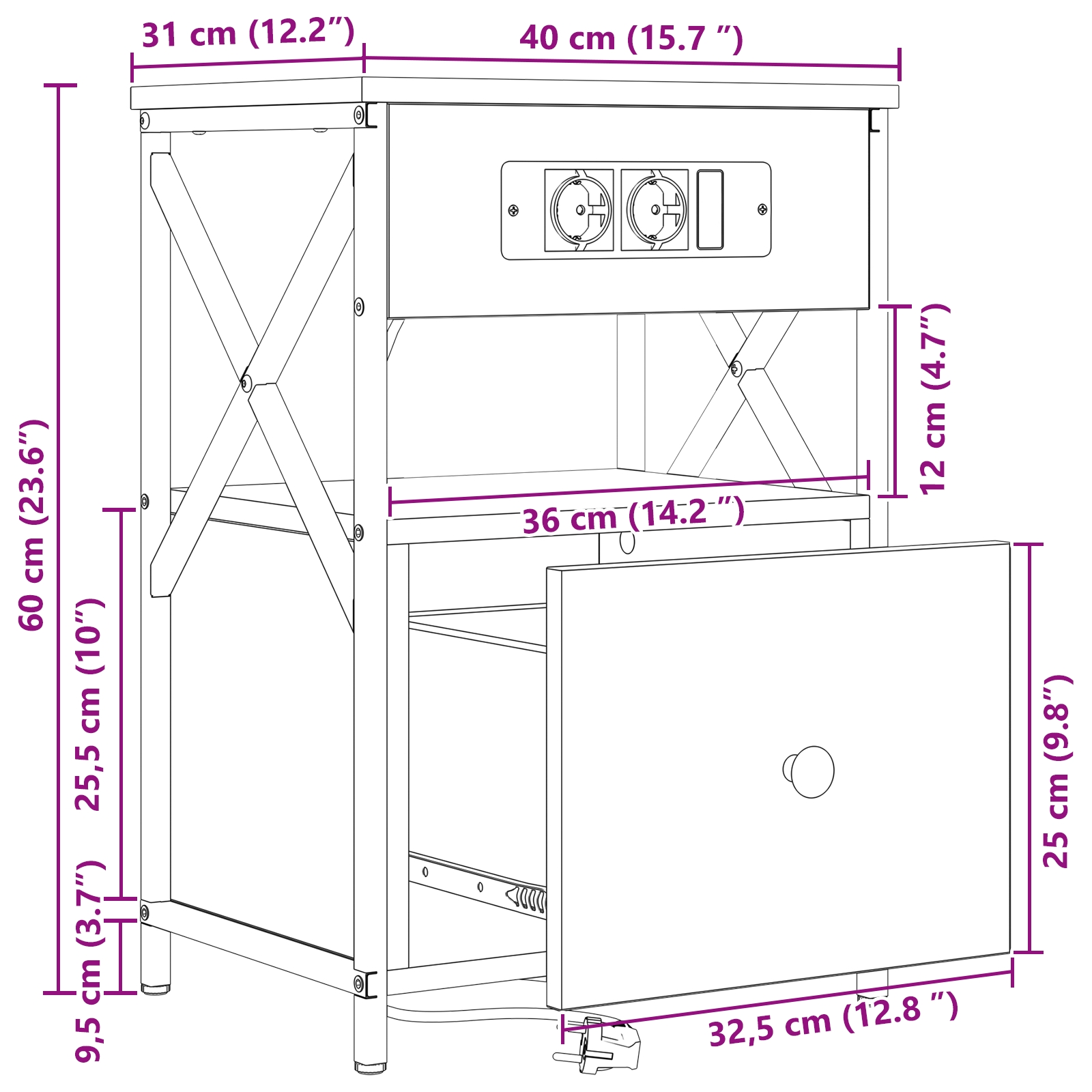 - Dimensiuni generale: 40 x 31 x 60 cm (L x l x î)