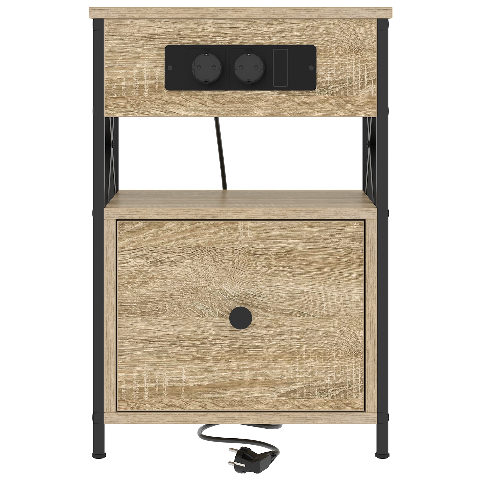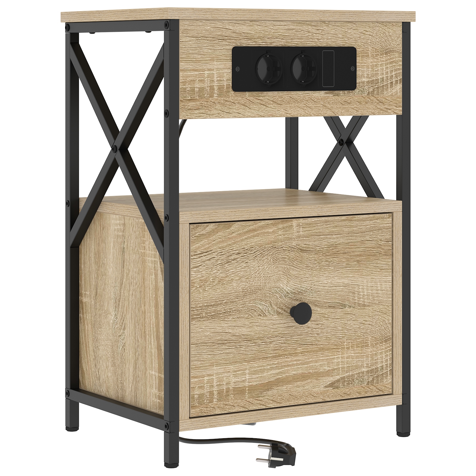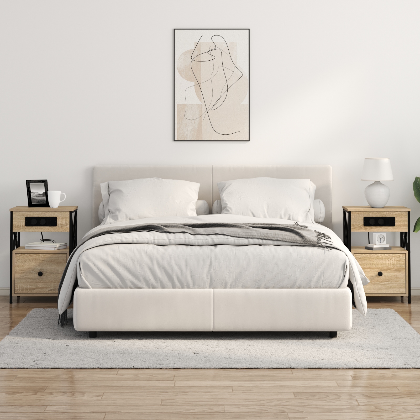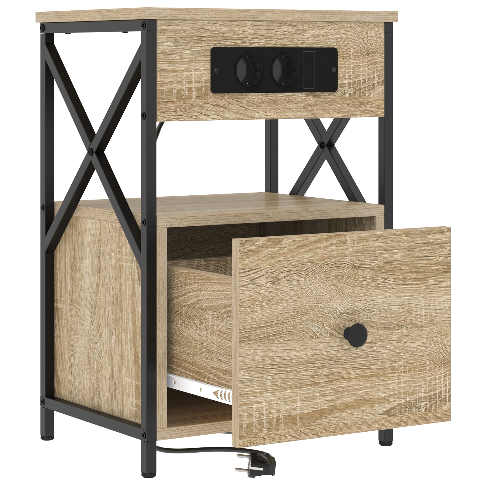 • Materiale de calitate: Construită din lemn prelucrat pentru utilizare de lungă durată, această noptieră combină rezistența cu estetică elegantă. Finisajul texturat al suprafeței, combinat cu un cadru din oțel, oferă o fundație structurală robustă care rezistă uzurii zilnice menținându-și în același timp atractivitatea stilistică.