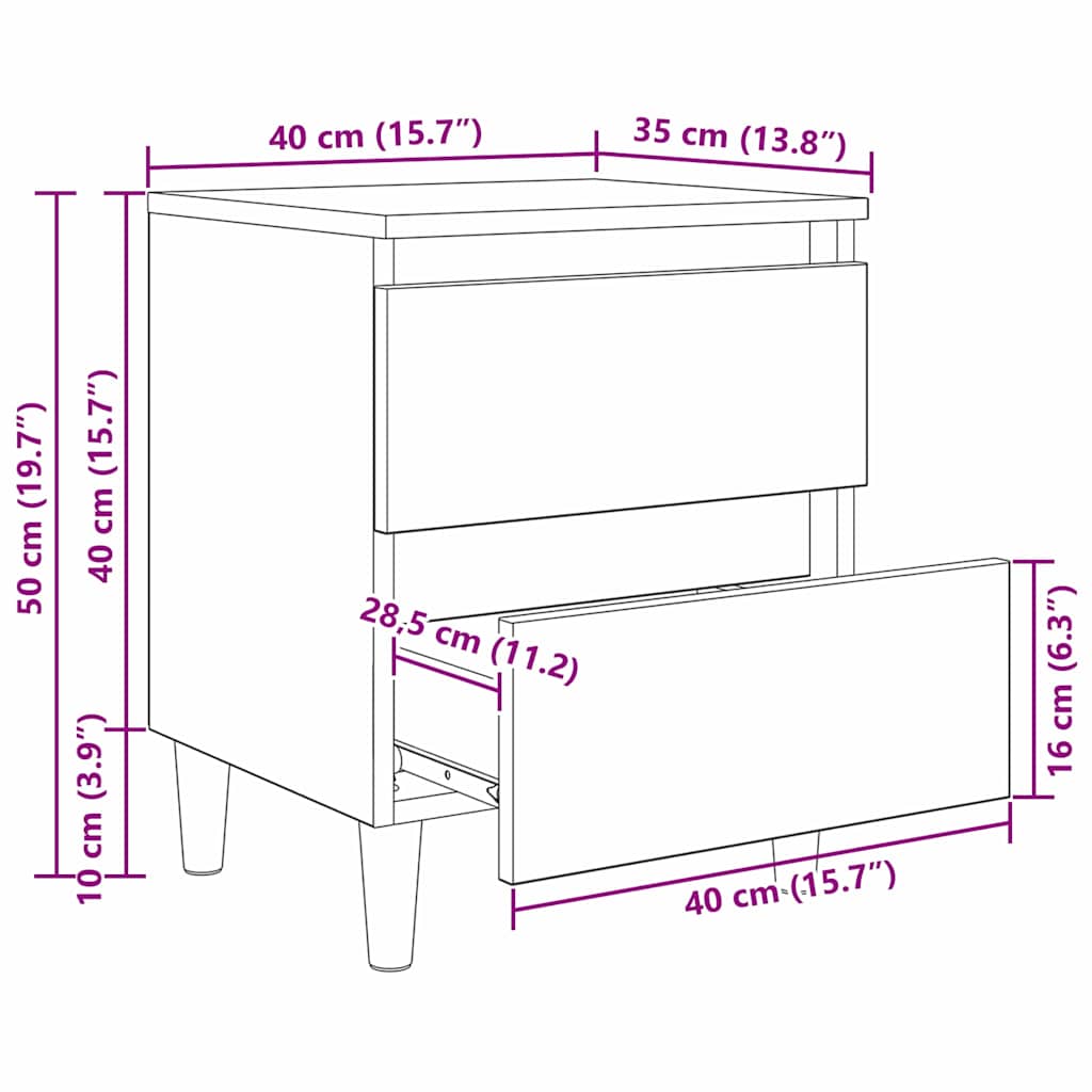 Dulap de pat Stejar Negru 40 x 35 x 50 cm Lemn compozit