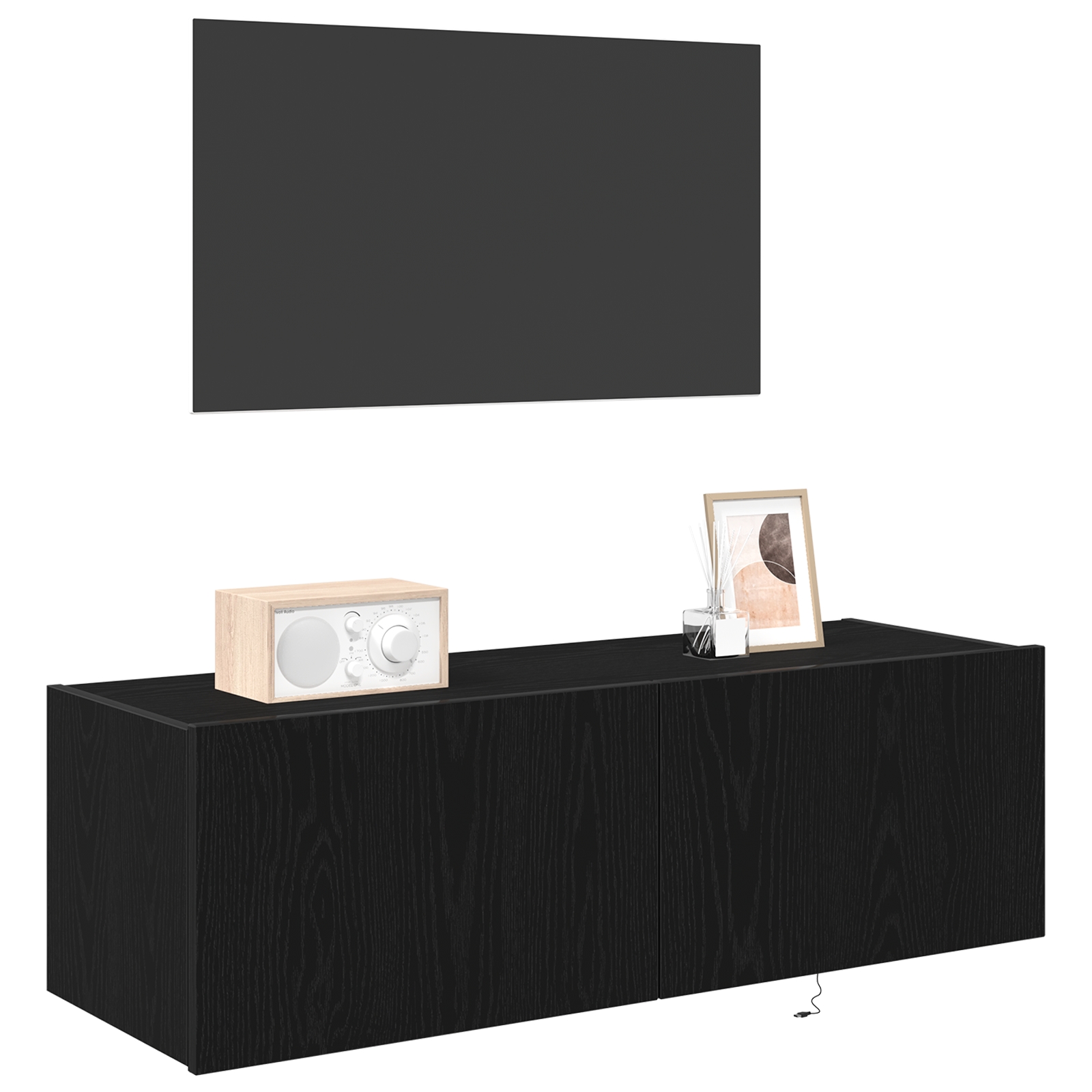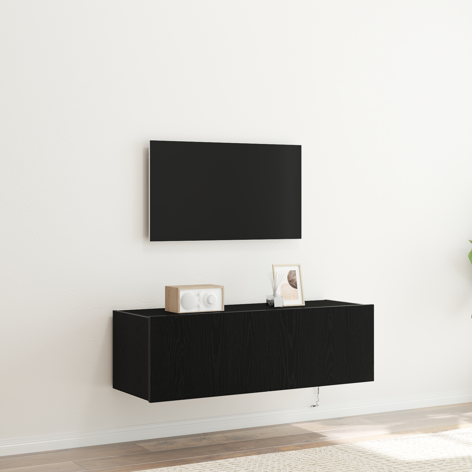 • Design Compact: Conceput să fie montat pe perete, cabinetul îți eliberează podeaua, ideal pentru un aspect mai deschis în camere mici. E o soluție practică și stilată pentru stocarea dispozitivelor electronice.