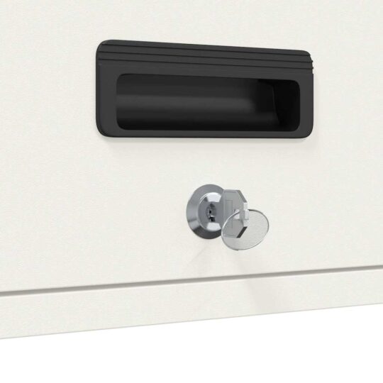 - Încuietoare cu Bolț Sigură: Ușile au încuietori cu bolț, asigurând o stocare sigură. Aceste încuietori sunt cunoscute pentru fiabilitatea lor și necesită o cheie, oferind un strat suplimentar de protecție pentru lucrurile tale importante.