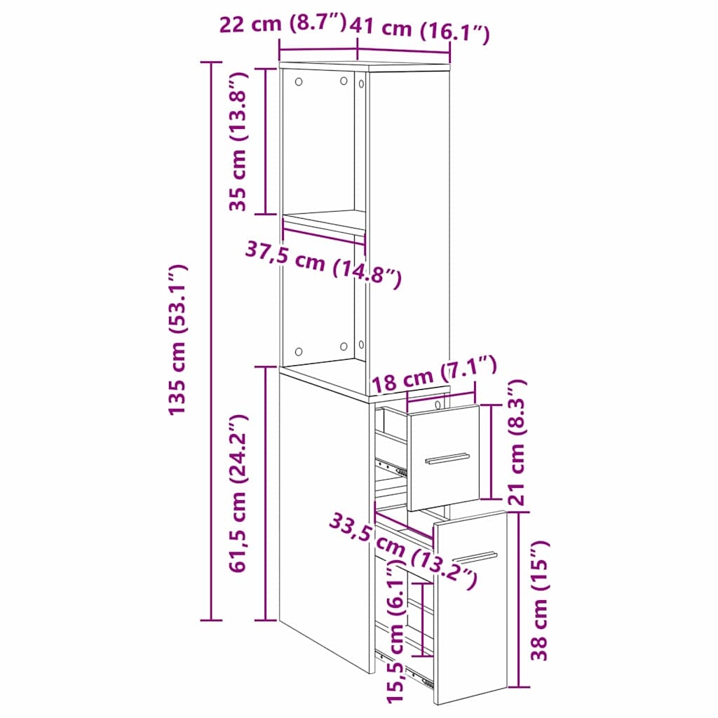 Dulap Îngust pentru Baie Stejar negru 22 x 41 x 135 cm